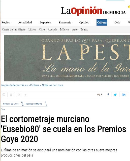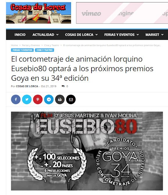 “EUSEBIO80” uno de los 10 cortometrajes de animación candidatos para los premios Goya 34 edición 2020.