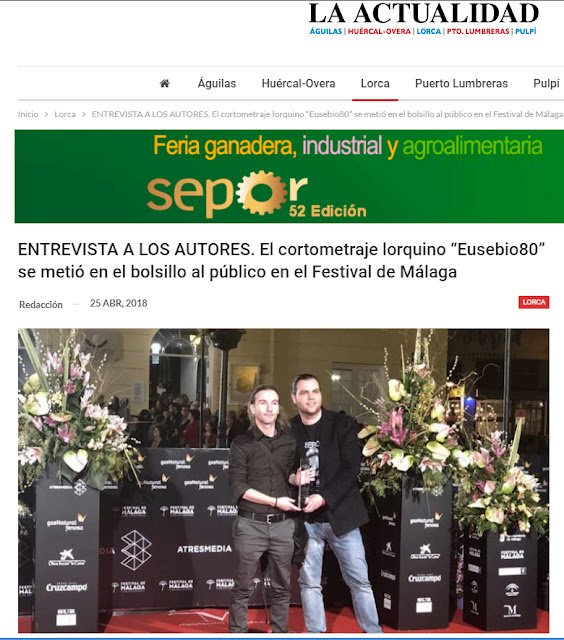 Eusebio 80 es un cortometraje rodado en Lorca, Murcia, ha competido en la sección oficial de 105 festivales de más de 20 países y logrado 11 premios, entre ellos, el premio del público del Festival de Málaga, según sus autores, que trabajaron 7 meses en sus 9 minutos y con presupuesto 0, este corto está influenciado por películas como ‘Metrópolis’, de Fritz Lang, y de series como ‘Black Mirror’.